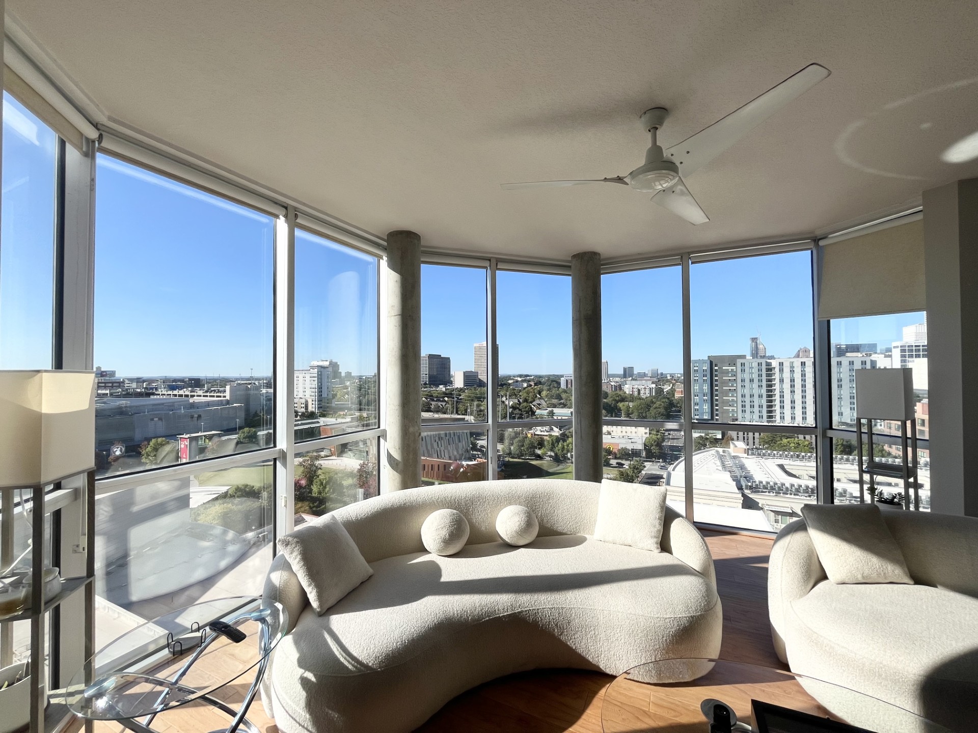 Unit 1104 is a northwest corner unit overlooking Centennial Olympic Park, Georgia Acquarium, World of Coca-Cola, and the Civil Rights Museum